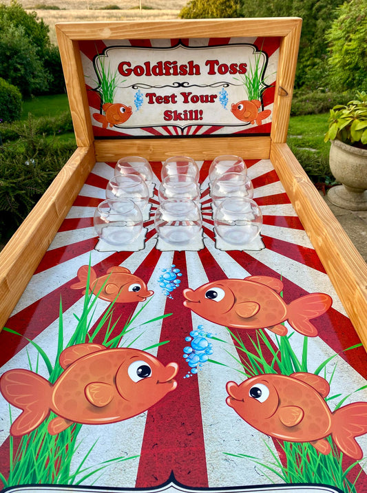All of the free-standing games are around 4ft tall by 2ft wide and fold flat for easy transport in a car or small van. The table games are 4ft long by 2ft wide. The average weight is around 10kgs per game so no heavy lifting.