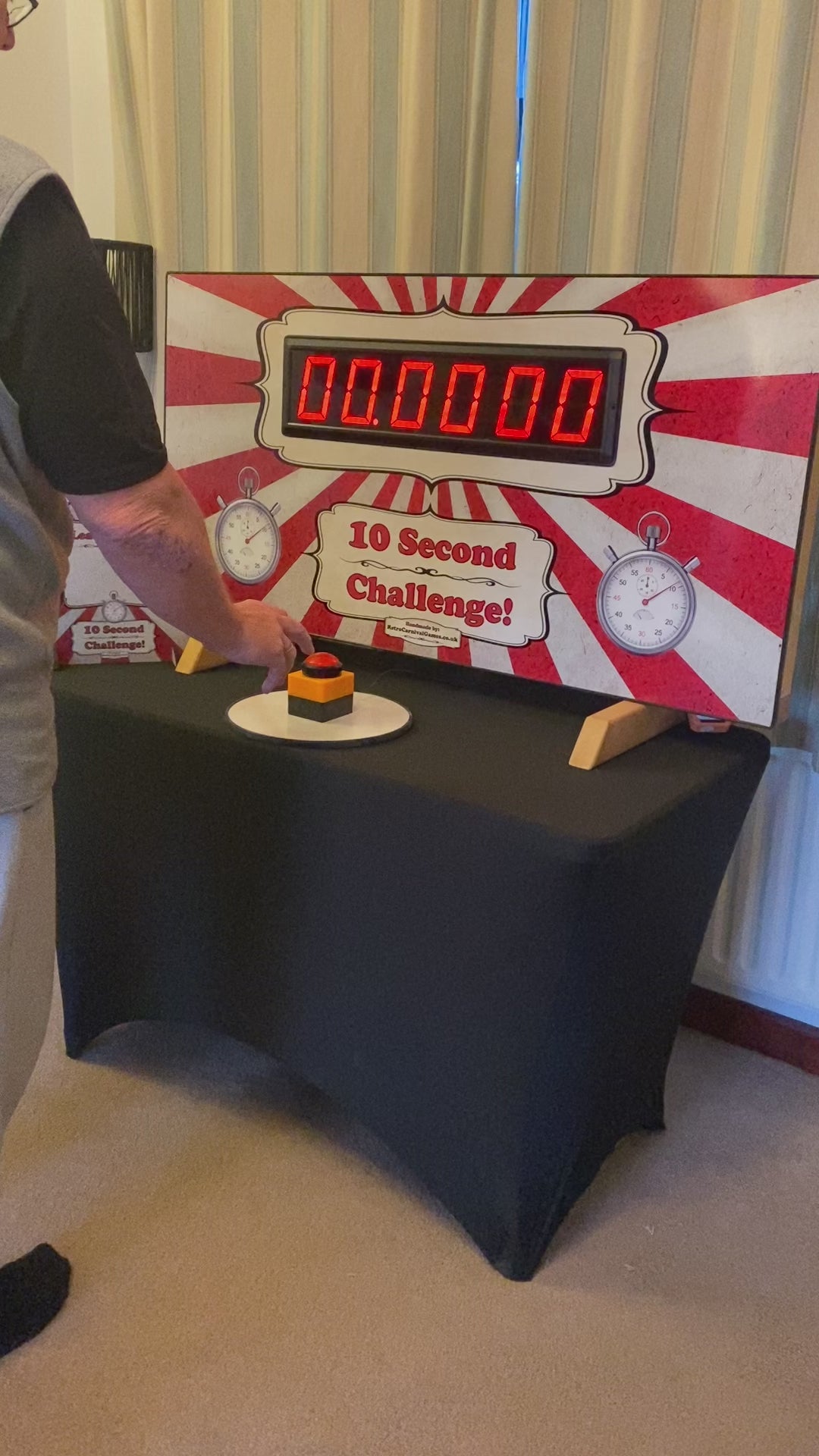 It is 4ft wide and sits safely on any table and comes complete ready to play with a standard 240v plug or optional 12v battery. This is lovingly handmade by us to our usual high standard and PAT tested.